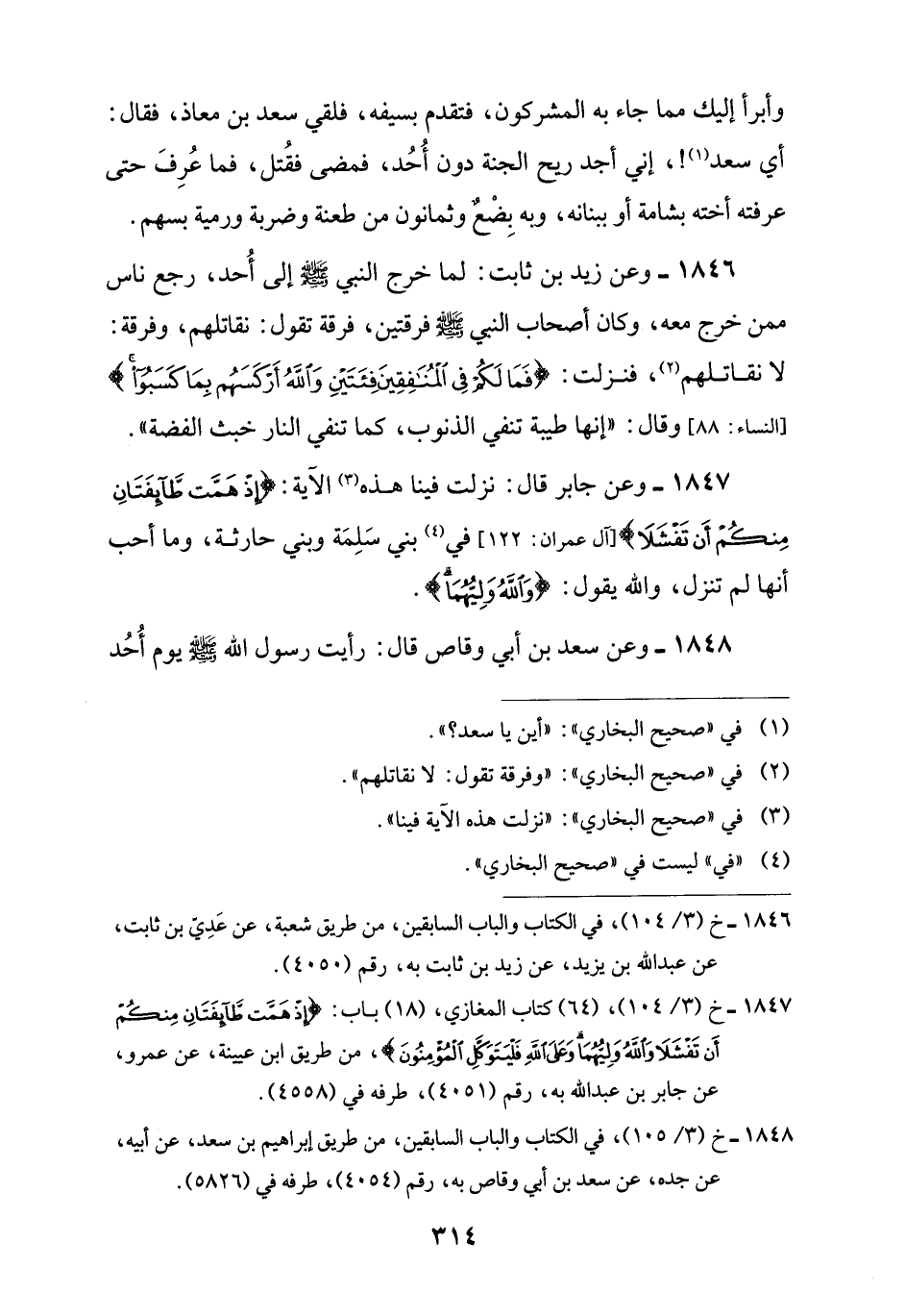 1846 - وعن زيد بن ثابت: لما خرج النبي -صلى اللَّه عليه وسلم- إلى أُحد، رجع ناس ممن خرج معه، وكان أصحاب النبي -صلى اللَّه عليه وسلم- فرقتين، فرقة تقول: نقاتلهم، وفرقة: لا نقاتلهم (¬2)، فنزلت: {فَمَا لَكُمْ فِي الْمُنَافِقِينَ فِئَتَيْنِ وَاللَّهُ أَرْكَسَهُمْ} [النساء: 88]، وقال: "إنها طيبة تنفي الذنوب، كما تنفي النار خبث الفضة".