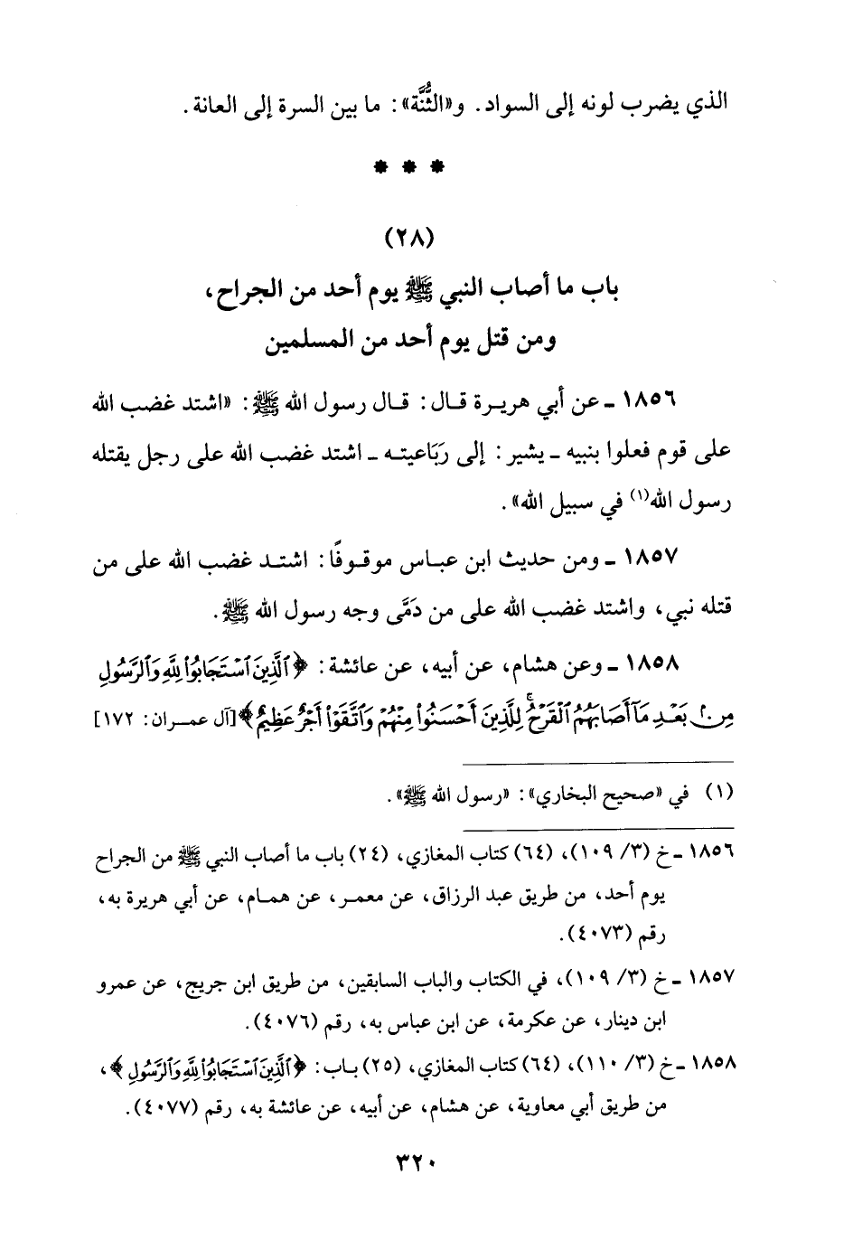 (28) باب ما أصاب النبي -صلى اللَّه عليه وسلم- يوم أحد من الجراح، ومن قتل يوم أحد من المسلمين