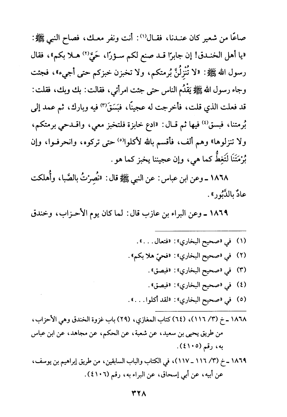 1868 - خ (3/ 116)، (64) كتاب المغازي، (29) باب غزوة الخندق وهي الأحزاب، من طريق يحيى بن سعيد، عن شعبة، عن الحكم، عن مجاهد، عن ابن عباس به، رقم (4105).
