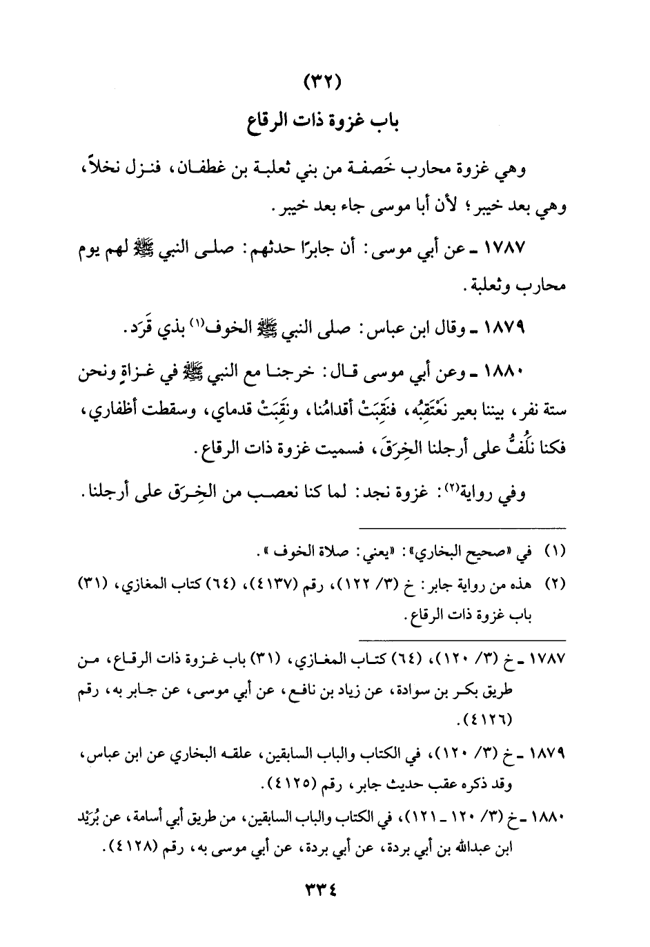 (¬2) هذه من رواية جابر: خ (3/ 122)، رقم (4137)، (64) كتاب المغازي، (31) باب غزوة ذات الرقاع.