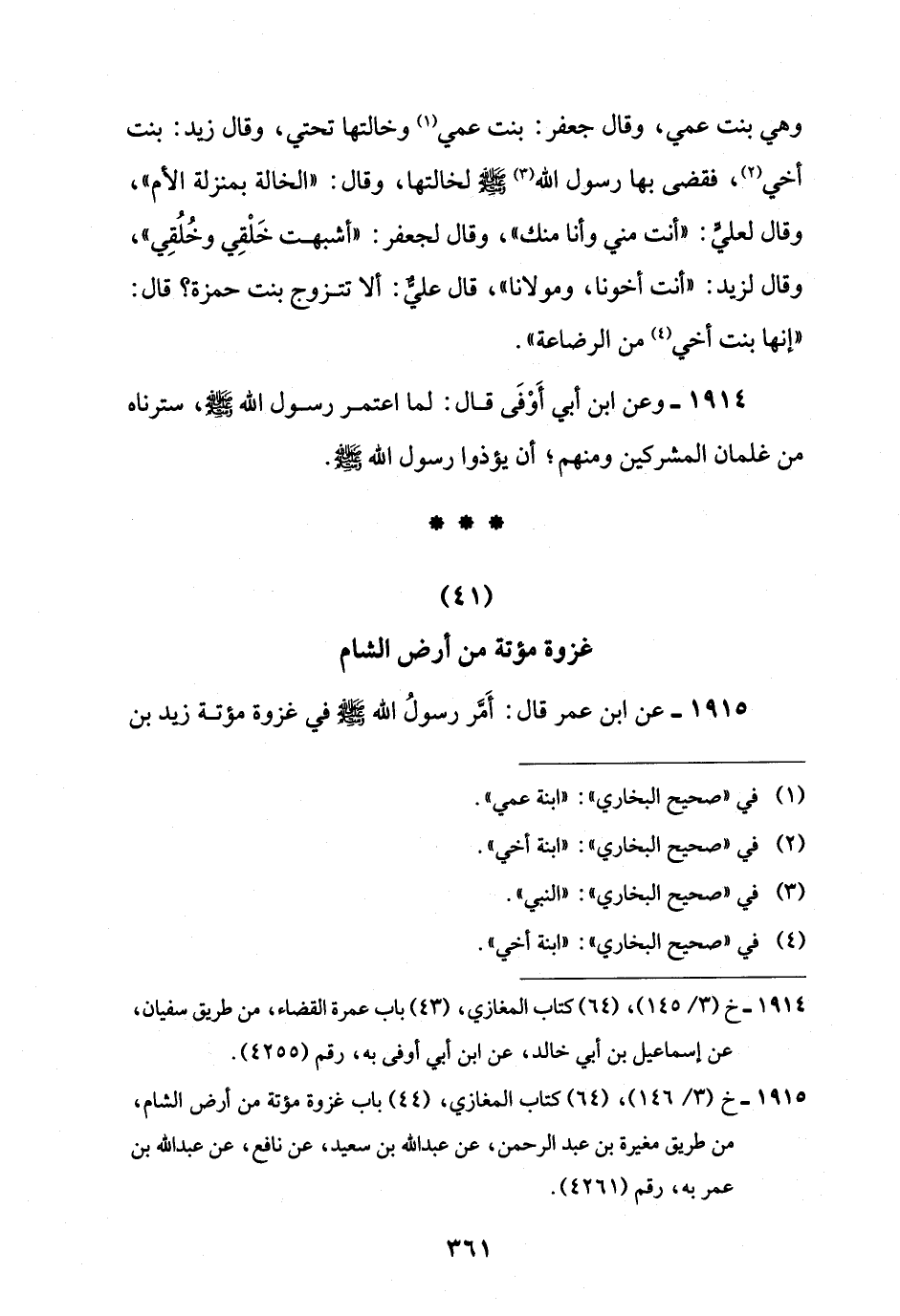 1914 - خ (3/ 145)، (64) كتاب المغازي، (43) باب عمرة القضاء، من طريق سفيان، عن إسماعيل بن أبي خالد، عن ابن أبي أوفى به، رقم (4255).