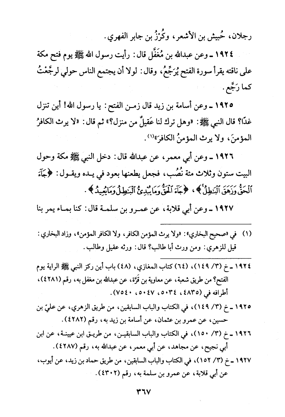 1925 - خ (3/ 149)، في الكتاب والباب السابقين، من طريق الزهري، عن عليّ بن حسين، عن عمرو بن عثمان، عن أسامة بن زيد به، رقم (4282).