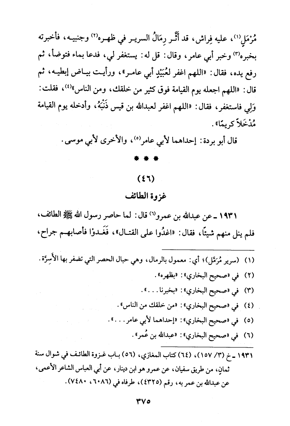 1931 - خ (3/ 157)، (64) كتاب المغازي، (56) باب غزوة الطائف في شوال سنة ثماني، من طريق سفيان، عن عمرو هو ابن دينار، عن أبي العباس الشاعر الأعمى، عن عبد اللَّه بن عمر به، رقم (4325)، طرفاه في (6086، 7480).