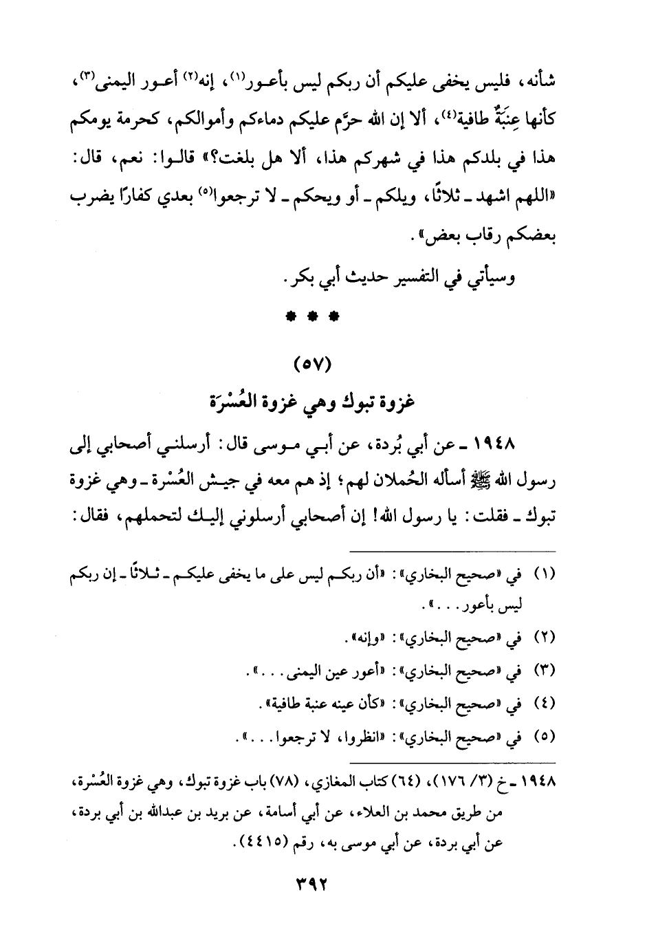 1948 - خ (3/ 176)، (64) كتاب المغازي، (78) باب غزوة تبوك، وهي غزوة العُسْرة، من طريق محمد بن العلاء، عن أبي أسامة، عن بريد بن عبد اللَّه بن أبي بردة، عن أبي بردة، عن أبي موسى به، رقم (4415).