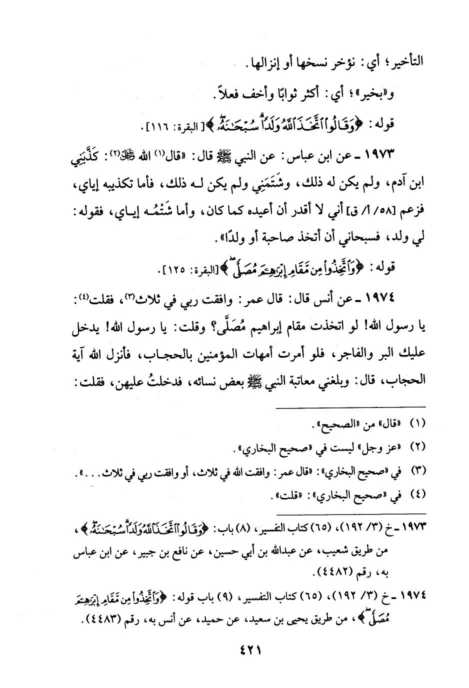 1973 - خ (3/ 192)، (65) كتاب التفسير، (8) باب: {وَقَالُوا اتَّخَذَ اللَّهُ وَلَدًا سُبْحَانَهُ}، من طريق شعيب، عن عبد اللَّه بن أبي حسين، عن نافع بن جبير، عن ابن عباس به، رقم (4482).