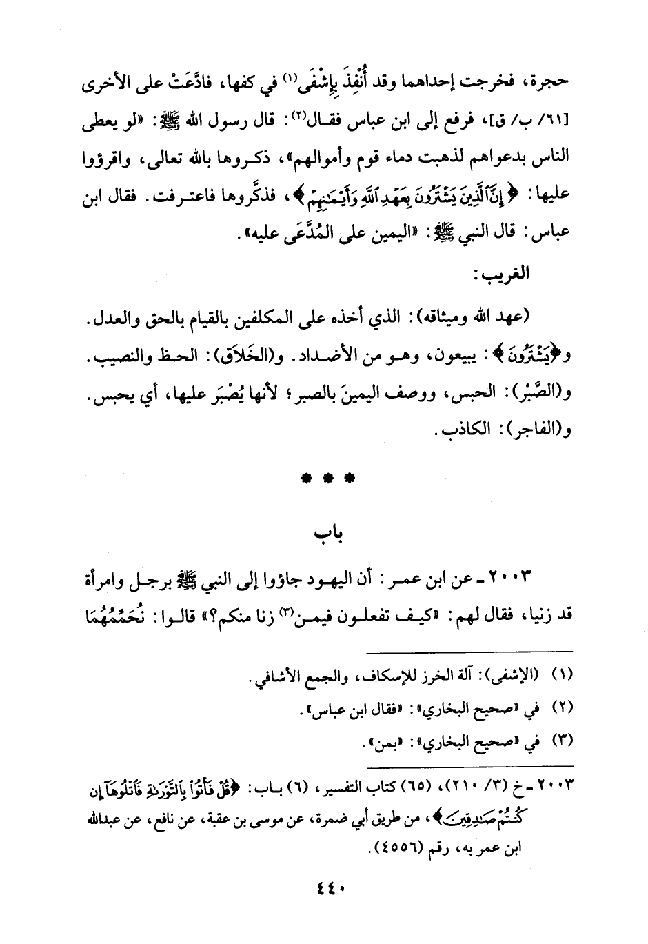 2003 - خ (3/ 210)، (65) كتاب التفسير، (6) باب: {قُلْ فَأْتُوا بِالتَّوْرَاةِ فَاتْلُوهَا إِنْ كُنْتُمْ صَادِقِينَ}، من طريق أي ضمرة، عن موسي بن عقبة، عن نافع، عن عبد اللَّه ابن عمر به، رقم (4556).