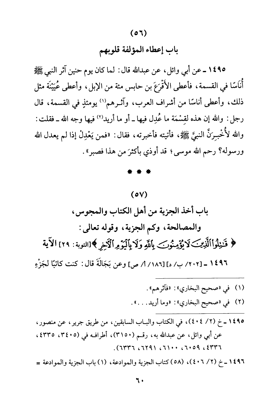 1496 - خ (2/ 406)، (58) كتاب الجزية والموادعة، (1) باب الجزية والموادعة =