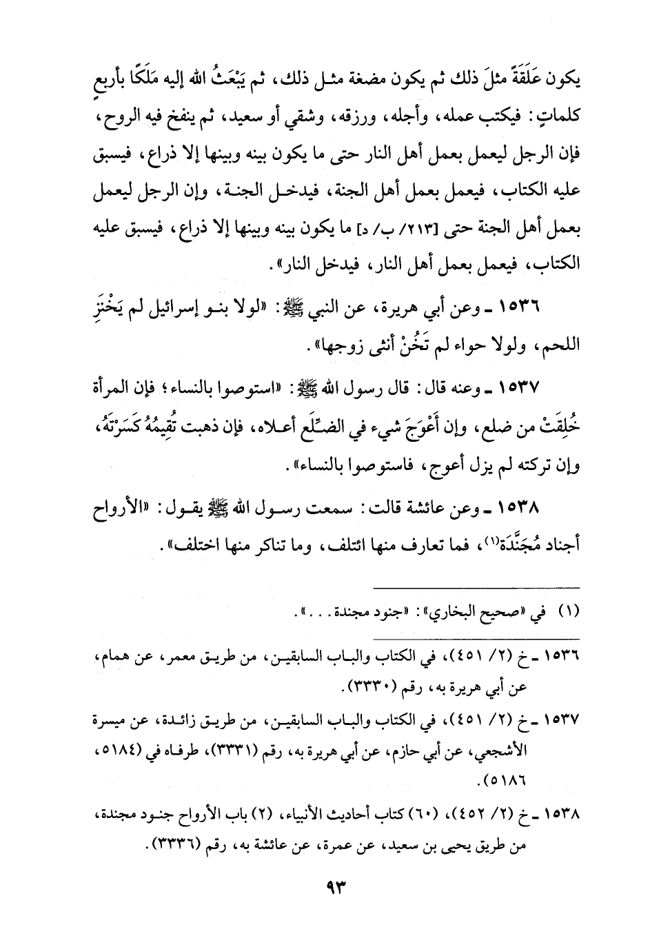 1537 - خ (2/ 451)، في الكتاب والباب السابقين، من طريق زائدة، عن ميسرة الأشجعي، عن أبي حازم، عن أبي هريرة به، رقم (3331)، طرفاه في (5184، 5186).