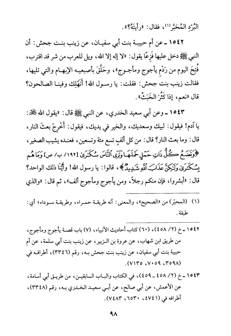 1542 - خ (2/ 458)، (60) كتاب أحاديث الأنبياء، (7) باب قصة يأجوج ومأجوج، من طريق ابن شهاب، عن عروة بن الزبير، عن زينب بنت أبي سلمة، عن أم حبيبة بنت أبي سفيان، عن زينب بنت جحش به، رقم (3346)، أطرافه في (3598، 7059، 7135).