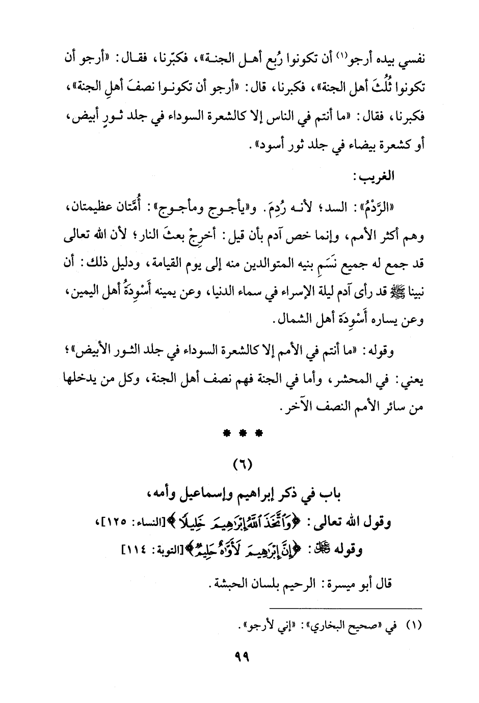 (6) باب في ذكر إبراهيم وإسماعيل وأمه، وقول اللَّه تعالى: {وَاتَّخَذَ اللَّهُ إِبْرَاهِيمَ خَلِيلًا} [النساء: 125]، وقوله عز وجل: {إِنَّ إِبْرَاهِيمَ لَأَوَّاهٌ حَلِيمٌ} [التوبة: 114]