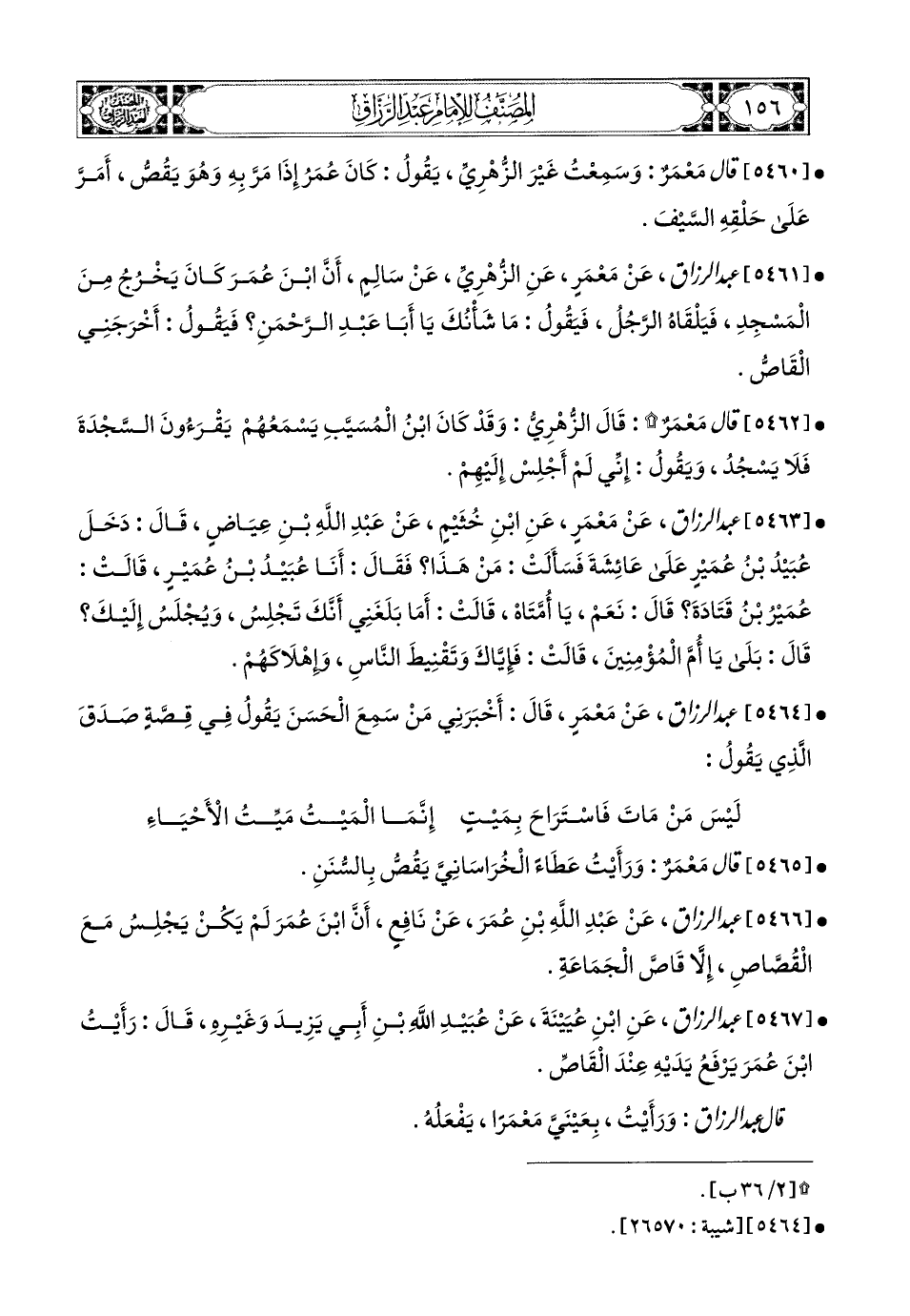 5466- عبد الرزاق، عَنْ عَبدِ اللهِ بْنِ عُمَرَ، عَن نَافِعٍ، أَنَّ ابْنَ عُمَرَ لَمْ يَكُنْ يَجْلِسُ مَعَ الْقُصَّاصِ، إِلاَّ قَاصُّ الْجَمَاعَةِ.
