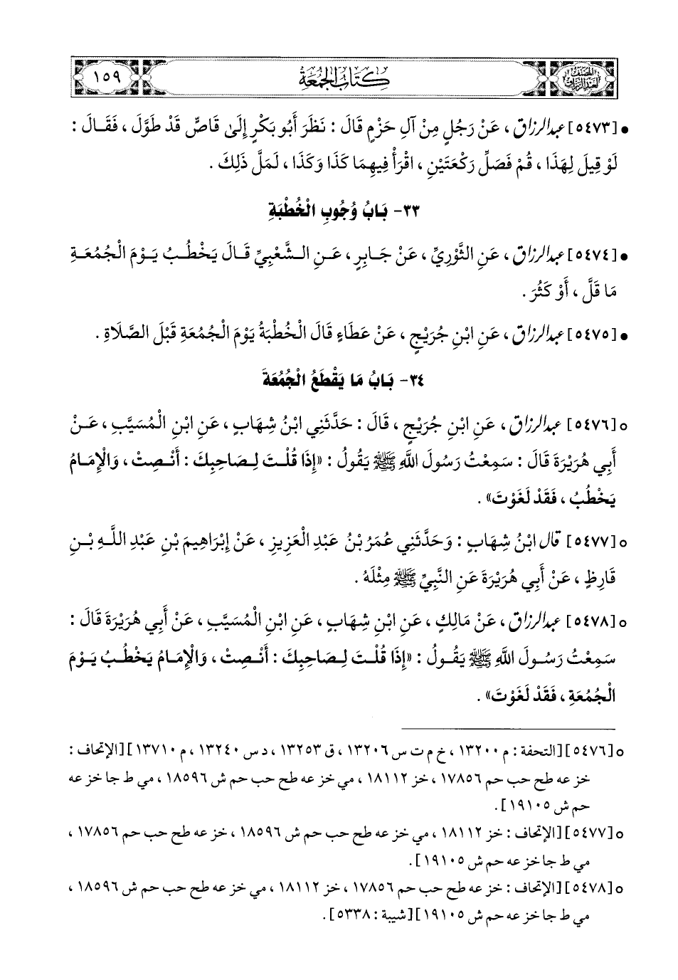 5476- عبد الرزاق، عَنِ ابْنِ جُرَيْجٍ، قَالَ: حَدَّثَنِي ابْنُ شِهَابٍ، عَنِ ابْنِ المُسَيَّبِ، عَنْ أَبِي هُرَيرَةَ، قَالَ: سَمِعْتُ رَسُولَ اللهِ صَلَّى اللهُ عَلَيْهِ وَسَلَّمَ يَقُولُ: إِذَا قُلْتَ لِصَاحِبِكَ: أَنْصِتْ، وَالإِمَامُ يَخْطُبُ، فَقَدْ لَغَوْتَ.