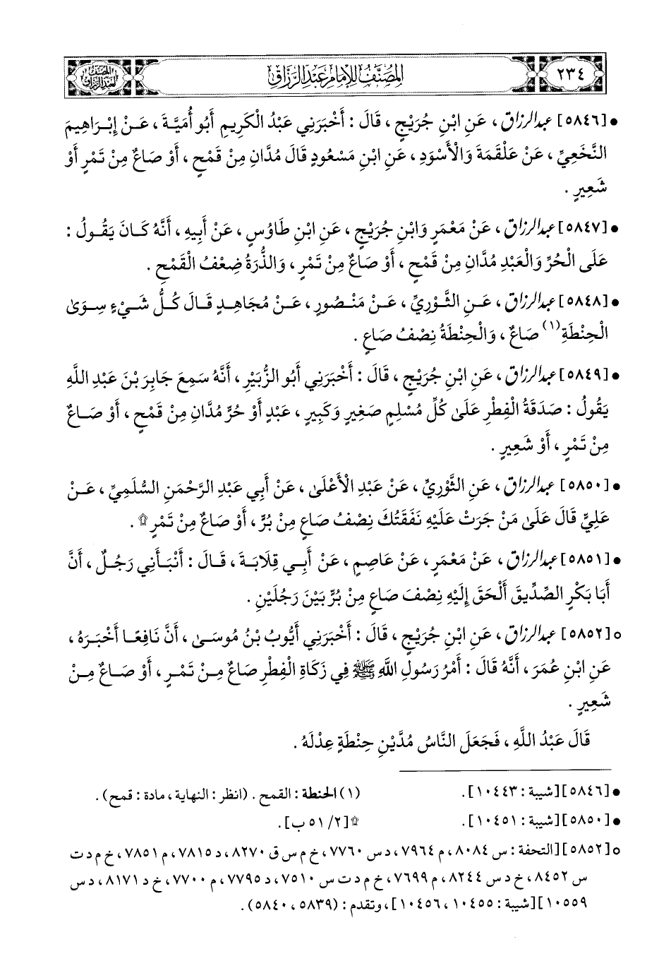 5850- عبد الرزاق، عَنِ الثَّورِيِّ، عَنْ عَبدِ الأَعْلَى، عَنْ أَبِي عَبدِ الرَّحْمَنِ السُّلَمِيِّ، عَنْ عَلِيٍّ، قَالَ: عَلَى مَنْ جَرَتْ عَلَيْهِ نَفَقَتُكَ نِصْفُ صَاعٍ مِنْ بُرٍّ، أَوْ صَاعٌ مِنْ تَمْرٍ.