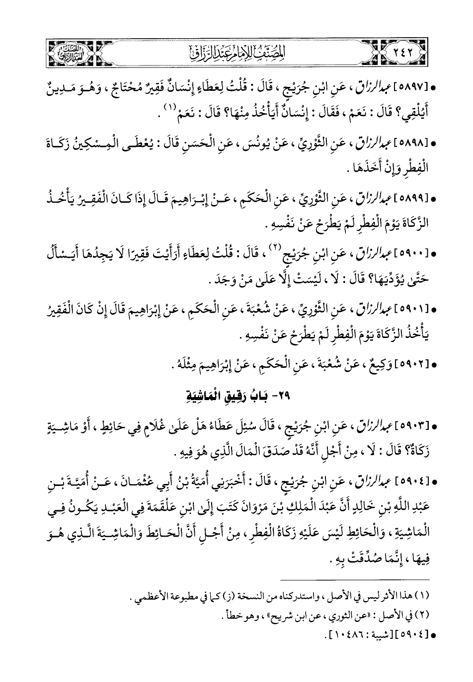 5898- عبد الرزاق، عَنِ الثَّورِيِّ، عَن يُونُسَ، عَنِ الْحَسَنِ قَالَ: يُعْطَى المِسْكِينُ زَكَاةَ الْفِطْرِ وَإِنْ أَخَذَهَا.