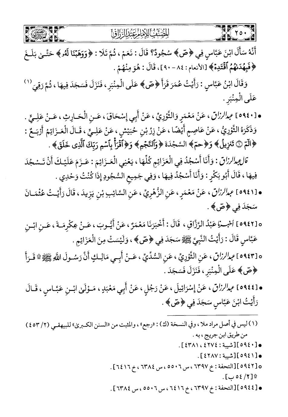5944- عبد الرزاق، عَن إِسْرَائِيلَ، عَن رَجُلٍ، عَنْ أَبِي مَعْبَدٍ، مَوْلَى ابْنِ عَبَّاسٍ، قَالَ: رَأَيْتُ ابْنَ عَبَّاسٍ سَجَدَ فِي {ص}.