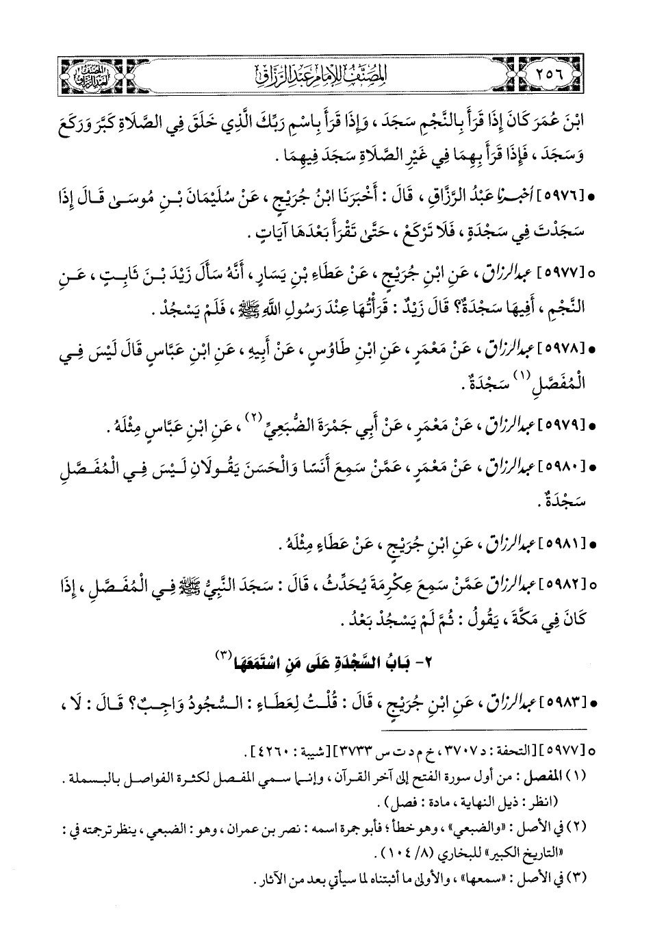 -[أخبرنا ابن جريج عن عكرمة بن خالد عن سعيد بن جبير عن ابن عمر وابن عباس قالا: ليس في المفصل سجدة] (1).