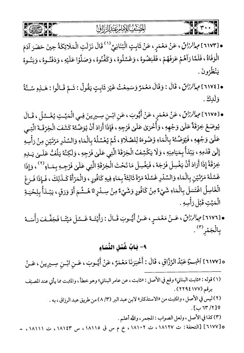 6174- (1)- عبد الرزاق، قَالَ: وَقَالَ مَعْمَرٌ: وسَمِعْتُ غَيْرَ ثَابِتٍ يَقُولُ: ثُمَّ قَالُوا: هَذِهِ سُنَّةُ وَلَدِكَ.