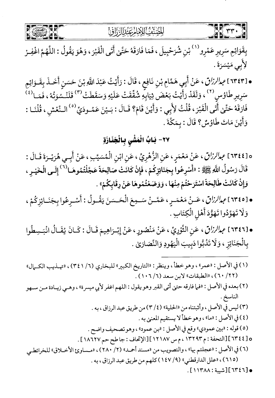6345- عبد الرزاق، عَنْ مَعْمَرٍ، عَمَّنْ سَمِعَ الْحَسَنَ يَقُولُ: أَسْرِعُوا بِجَنَائِزِكُمْ، وَلاَ تَهَوَّدُوا تَهَوُّدَ أَهْلِ الْكِتَابِ.