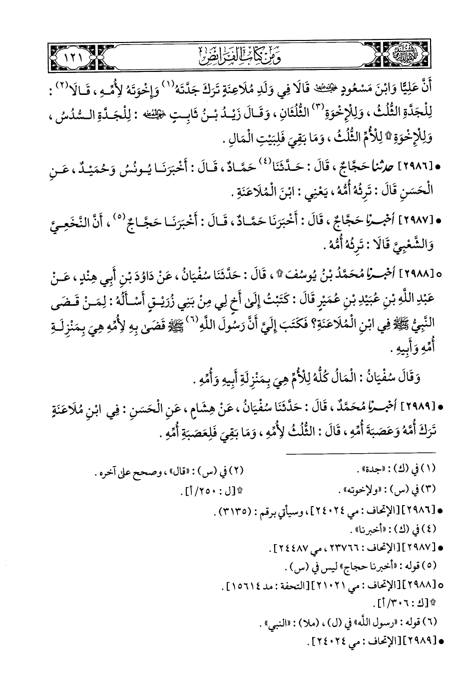 2989- أَخبَرَنا مُحَمَّدٌ, قَالَ: حَدَّثَنَا سُفْيَانُ, عَنْ هِشَامٍ, عَنِ الْحَسَنِ فِي ابْنِ مُلاَعَنَةٍ (1) تَرَكَ أُمَّهُ وَعَصَبَةَ أُمِّهِ, قَالَ: الثُّلُثُ لأُمِّهِ, وَمَا بَقِيَ فَلِعَصَبَةِ أُمِّهِ.