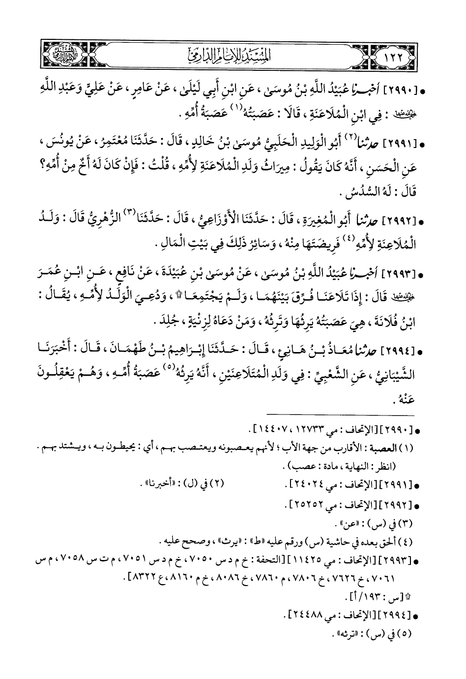 (1) زاد في طبعة دار البشائر: "ترث" وقال محققها: سقطت من جملة من الأصول, واستدركناها من هامش "سل", وهي ثابتة أيضًا في صلب "د. درك".