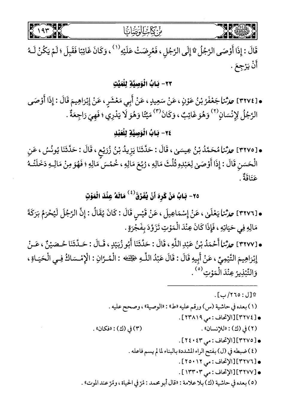 3277- حَدَّثَنَا أَحْمَدُ بْنُ عَبْدِ اللهِ, قَالَ: حَدَّثَنَا أَبُو زُبَيْدٍ, قَالَ: حَدَّثَنَا حُصَيْنٌ, عَنْ إِبْرَاهِيمَ التَّيْمِيِّ, عَنْ أَبِيهِ, قَالَ: قَالَ عَبْدُ اللهِ رَضِيَ اللهُ عَنْهُ: الْمُرَّانِ (1): الإِمْسَاكُ فِي الْحَيَاةِ, وَالتَّبْذِيرُ عِنْدَ الْمَوْتِ (2).
