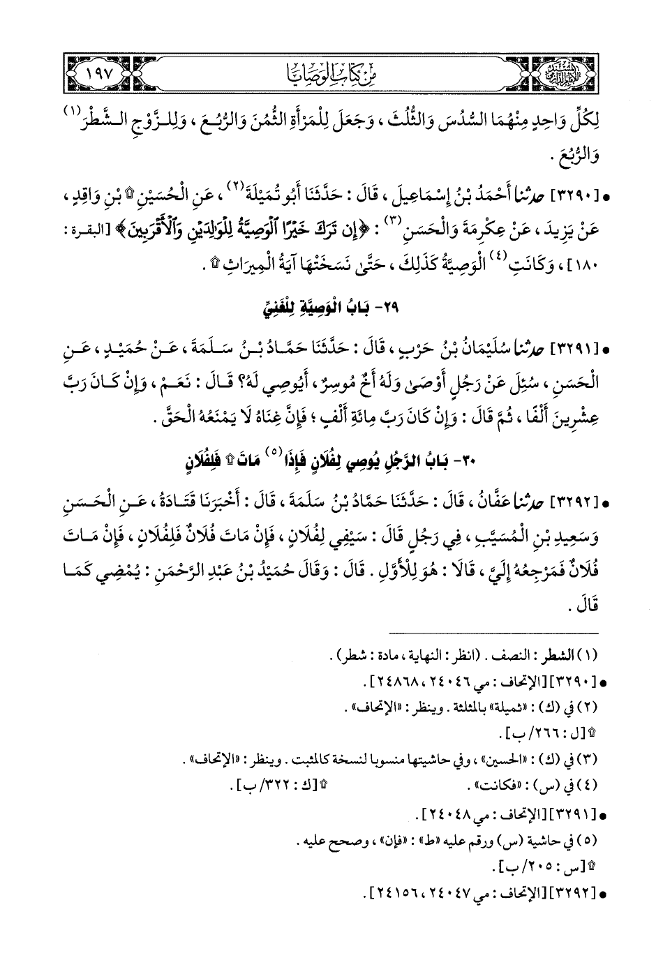 3291- حَدَّثَنَا سُلَيْمَانُ بْنُ حَرْبٍ, قَالَ: حَدَّثَنَا حَمَّادُ بْنُ سَلَمَةَ, عَنْ حُمَيْدٍ, عَنِ الْحَسَنِ (1) سُئِلَ عَنْ رَجُلٍ أَوْصَى, وَلَهُ أَخٌ مُوسِرٌ, أَيُوصِي لَهُ؟ قَالَ: نَعَمْ, وَإِنْ كَانَ رَبَّ عِشْرِينَ أَلْفًا, ثُمَّ قَالَ: وَإِنْ كَانَ رَبَّ مِئَةِ أَلْفٍ, فَإِنَّ غِنَاهُ لاَ يَمْنَعُهُ الْحَقَّ.