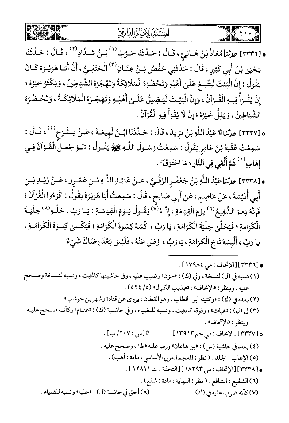 (1) في طبعة دار البشائر: "مشرح بن هاعان", وقال محققها: في "ك. ل. غ": مشرح غير منسوب وفي بقية الأصول وإتحاف المهرة كما أثبتناه.