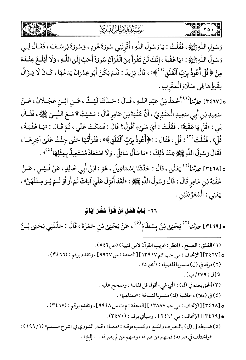 (1) في طبعة دار البشائر: «يا عقبة قل, فقلت: أي شيء أقول؟ قال: {قل أعوذ برب الفلق}».