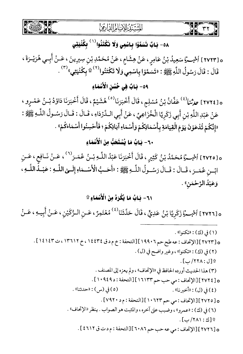 (2) قال محقق طبعة دار البشائر: ذكره الحافظ في الإتحاف برقم: 19906, لكن لم يرقم عليه برقم المصنف, كأنه ذهل عن كونه عنده.