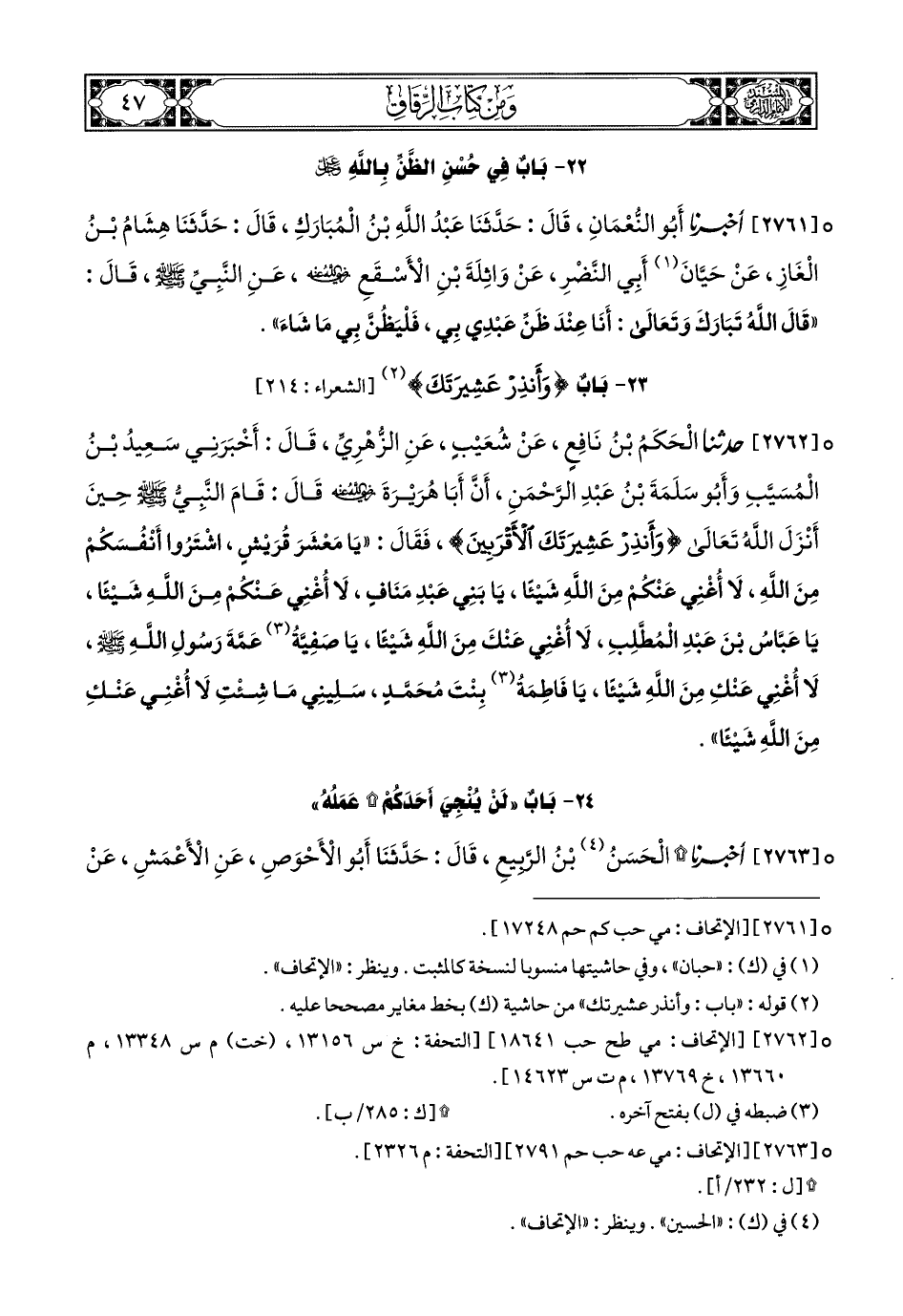 22 - بَابٌ فِي حُسْنِ الظَّنِّ بِاللهِ عَزَّ وّجّلَّ.