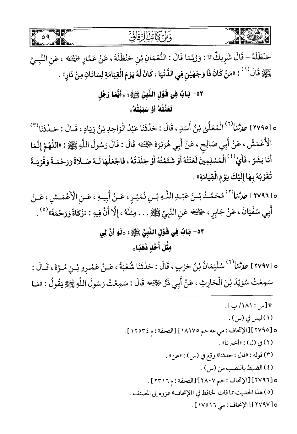 52- باب فِي قَوْلِ النَّبِيِّ صَلى الله عَليهِ وسَلم: أَيُّمَا رَجُلٍ لَعَنْتُهُ, أَوْ سَبَبْتُهُ.