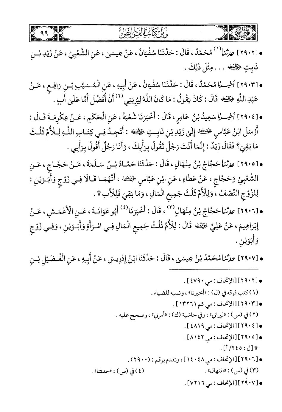 2902- أَخبَرَنا مُحَمَّدٌ (1), قَالَ: حَدَّثَنَا سُفْيَانُ, عَنْ عِيسَى, عَنِ الشَّعْبِيِّ, عَنْ زَيْدِ بْنِ ثَابِتٍ رَضِيَ اللهُ عَنْهُ, مِثْلَ ذَلِكَ.