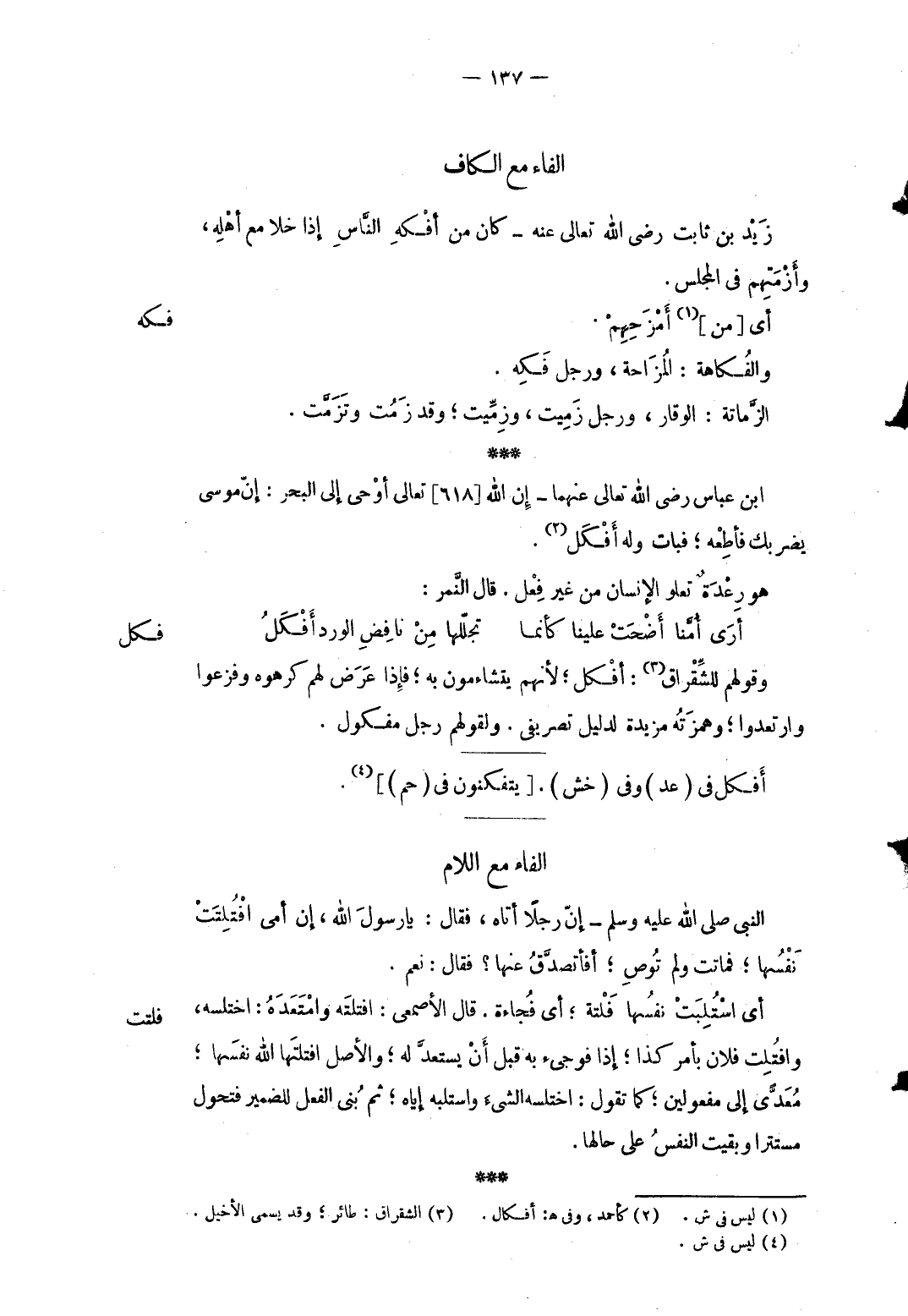 فكه زيد بن ثَابت رَضِي الله تَعَالَى عَنهُ كَانَ من أفكه النَّاس إِذا خلا مَعَ أَهله وأزمتهم فِي الْمجْلس أَي من أمزحهم. والفكاهة: المزاحة وَرجل فكه. الزَّماتة: الْوَقار وَرجل زميت وزميت وَقد زمت وتزمت.