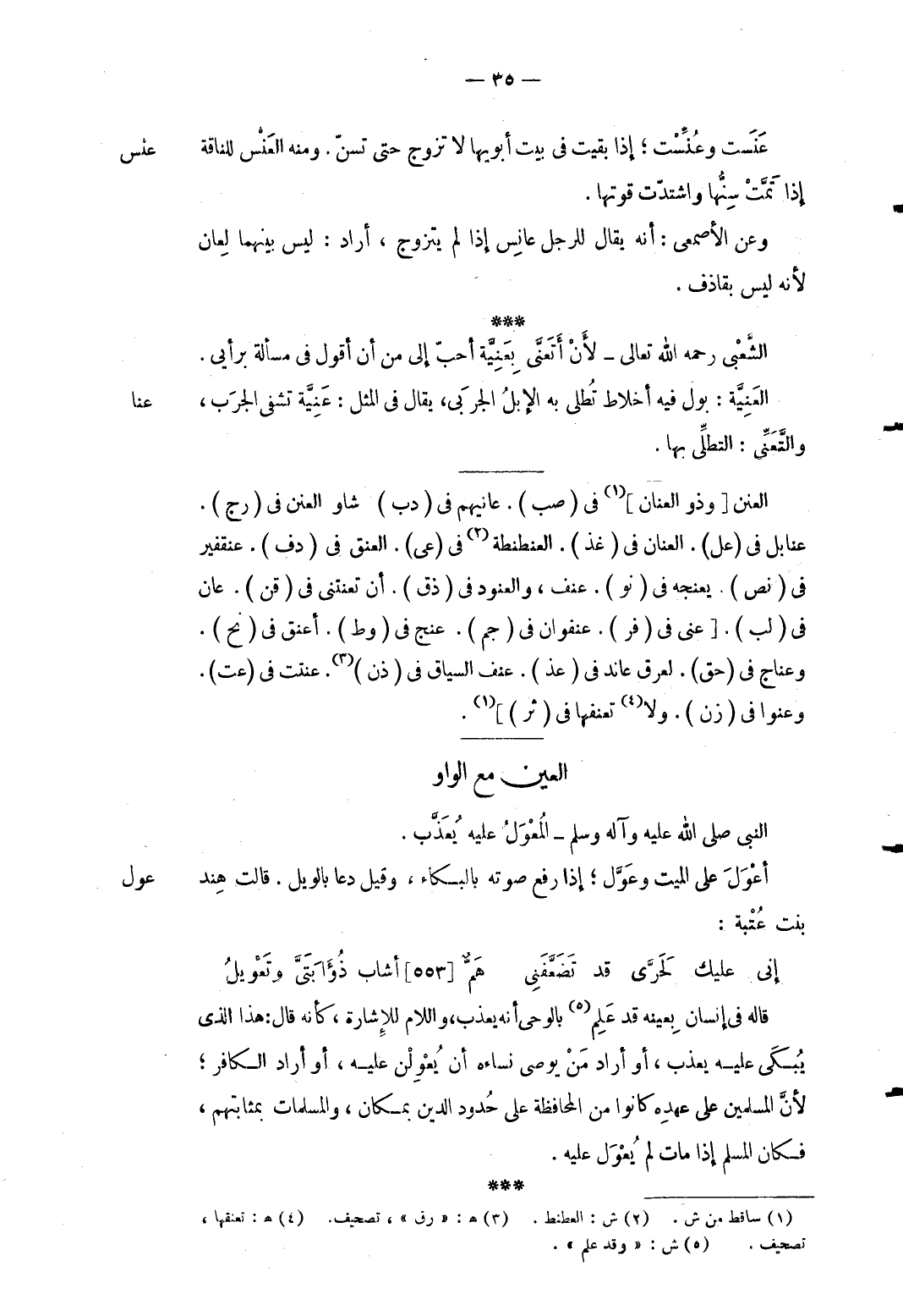 عَنَّا الشّعبِيّ رَحمَه الله لِأَن أتعنى بعنية أحب إِلَيّ أَن أَقُول فِي مَسْأَلَة برأيي العنية بَوْل فِيهِ أخلاط تطلى بِهِ الْإِبِل الجربي يُقَال فِي الْمثل عنية تشفى الجرب والتعني التطلى بهَا.