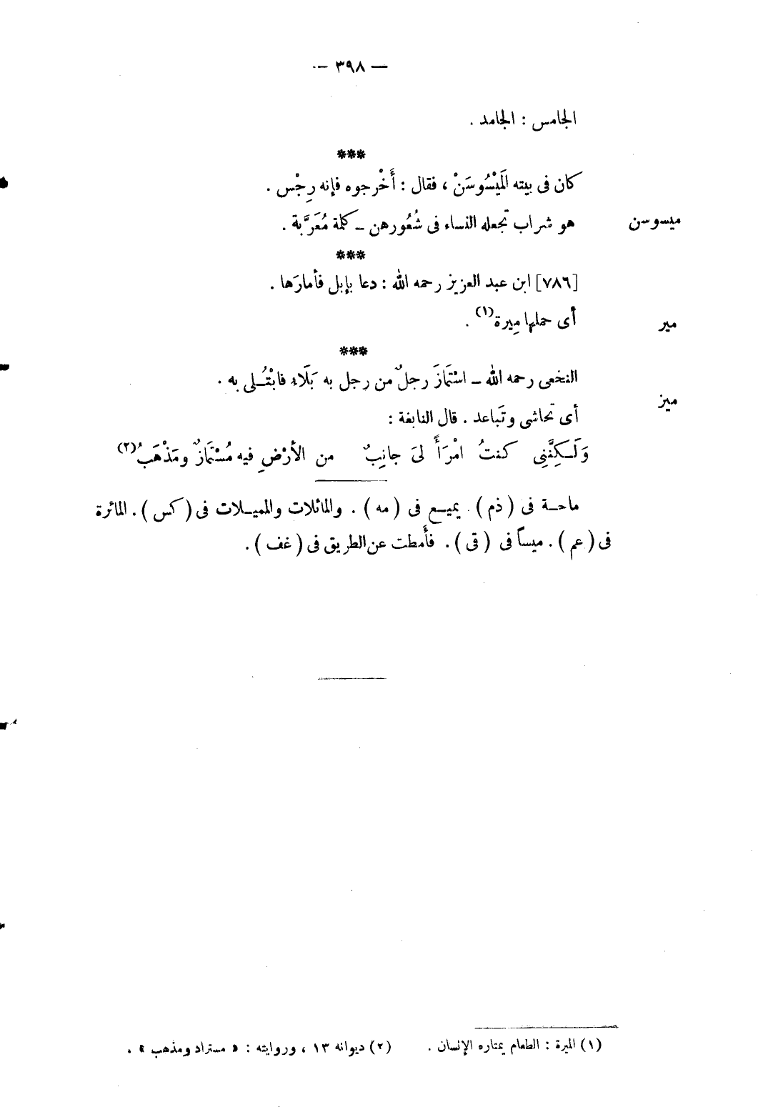 ميز النَّخعِيّ رَحمَه الله استماز رجل من رجل بِهِ بلَاء فابتُلي بِهِ. أَي تحاشى وتباعد. قَالَ النَّابِغَة: ... وَلَكِنَّنِي كنتُ امْرَأً ليَ جانِبٌ ... من الأَرْض فِيهِ مستماز وَمذهب ...