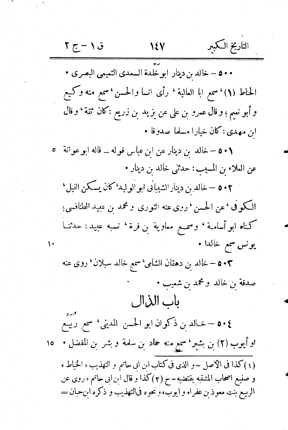 (1) زاد ابن ابى حاتم " مرسل " وصنيع المؤلف يقتضى ذلك فانه قد افرد من يقال له خالد من الصحابة في اول باب خالد - ح.