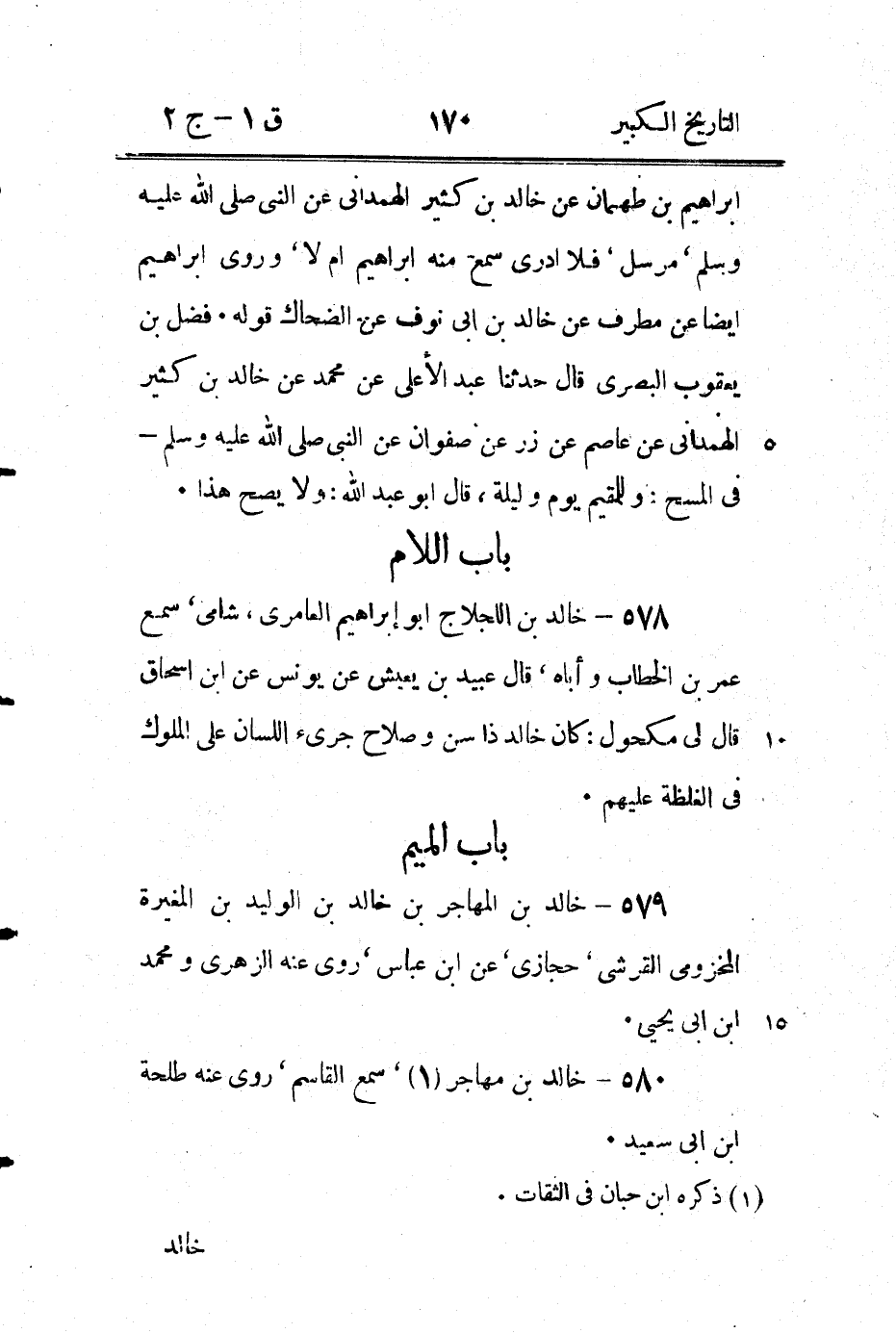 (3) زاد ابن ابى حاتم " الثقفى روى عن عمر مرسل وعن شيخ من كنانة عن عمر روى عنه حجاج بن ارطاة ومعاوية بن صالح " فعنده ان هذا والاتي رقم (585) واحد وزعم ابن عساكر ان خَالِد بْن مُحَمَّد بْن خَالِد بْن الزبير هو والراوي عن بلال بن ابى الدرداء واحد وسيأتى الراوى عن بلال عقب هذا وأفرده ابن ابى حاتم وابن حبان ايضا - ح (4) هو ابن ارطاة كما مر في الحاشية ونبه عليه في هامش الاصل - ح (5) زعم ابن عساكر انه والذى قبله واحد كما مر - ح.