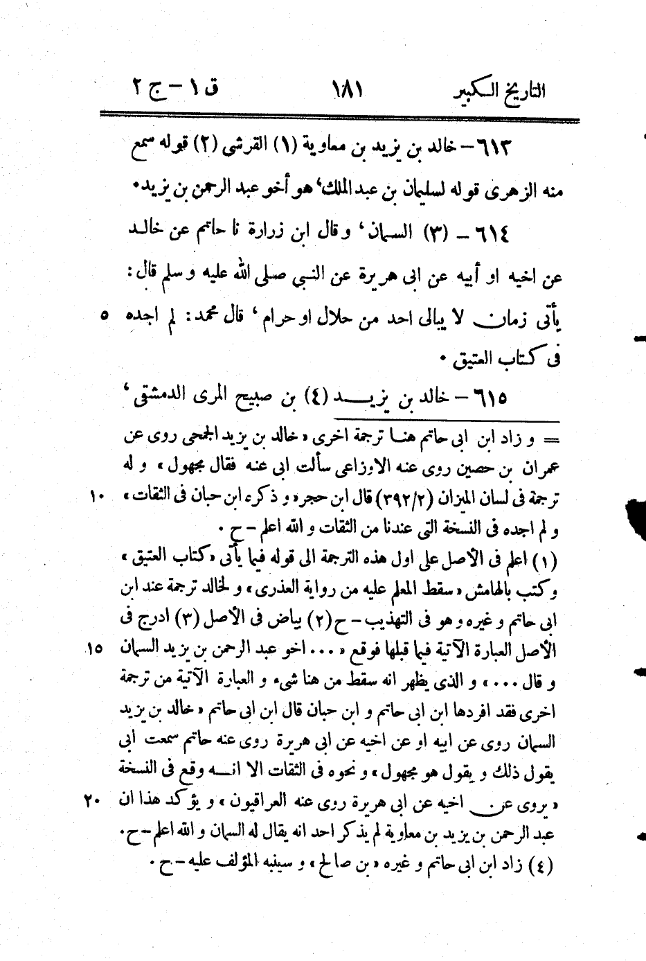 618 - خَالِد بْن أَبِي يزيد أَبُو عَبْد الرحيم، قَالَ مُحَمَّد بْن سلمة عَنْ زيد بْن أَبِي أنيسة وجهم بْن جارود روى عنهُ مُحَمَّد بْن سلمة، قَالَ مُحَمَّد بْن مهران حدثنا عيسى بْن يونس عَنْ خَالِد بْن يزيد أَبِي عَبْد الرحيم الجزري سَمِعَ مكحولا، وسمع حجاج الاعور