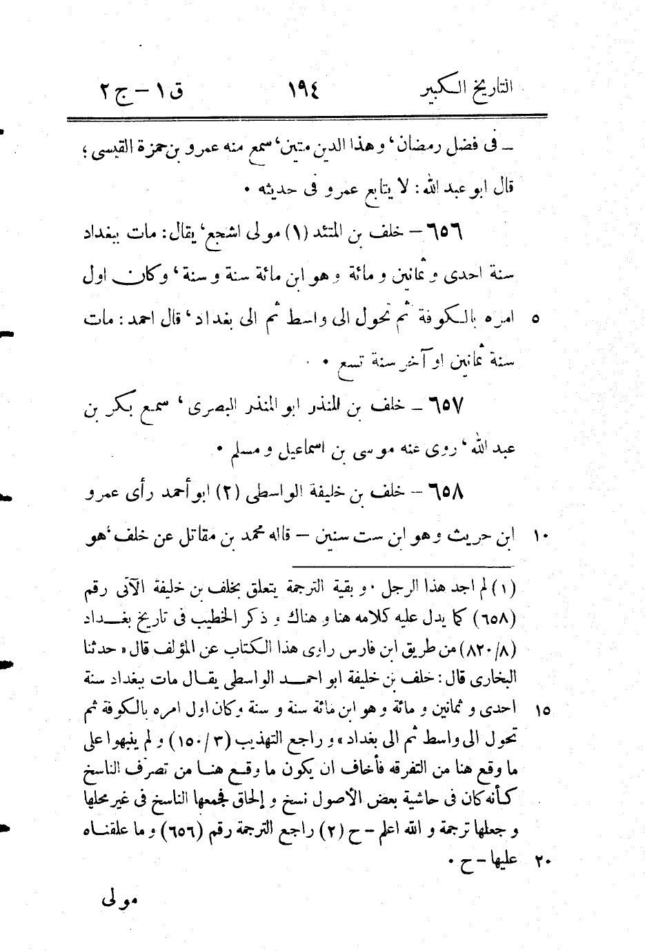 (1) زاد هنا في الاصل " خلف صاحب البركانية ... " إلى تمام الترجمة التى تقدمت رقم (647) بلفظ " خليفة صاحب البركانية.." وبالهامش " في اخرى خليفة فعلى هذا يكون في الباب قبل هذا وقد اثبته هناك في الحاشية " وفى موضع آخر من الهامش " الصواب خليفة وكذا ذكره ابن ابى حاتم ".