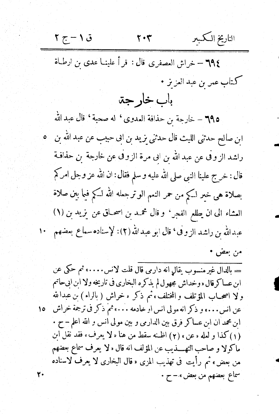 (1) راجع ترجمة جعفر بن عبد الرحمن بن خارجة (1 / 2 / 196) - ح.