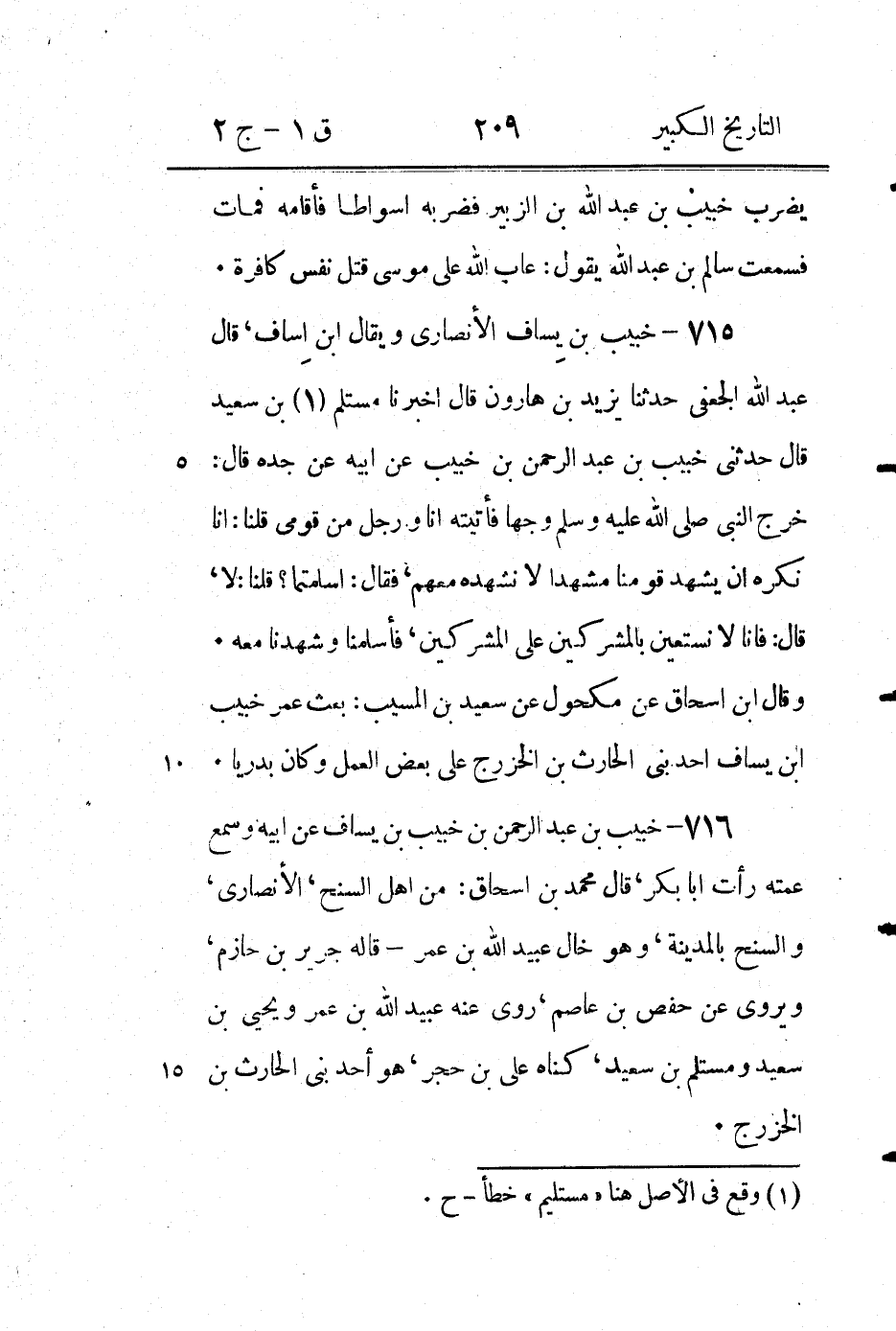 مُحَمَّد بْن منصور قَالَ حدثنا أَبُو أَحْمَد الزبيري عَنْ سَعِيد بْن حسان أخبرني عياض بْن وهب أخبرني عَبْد اللَّه (2) بْن ابى حبيبة سمع خثيما