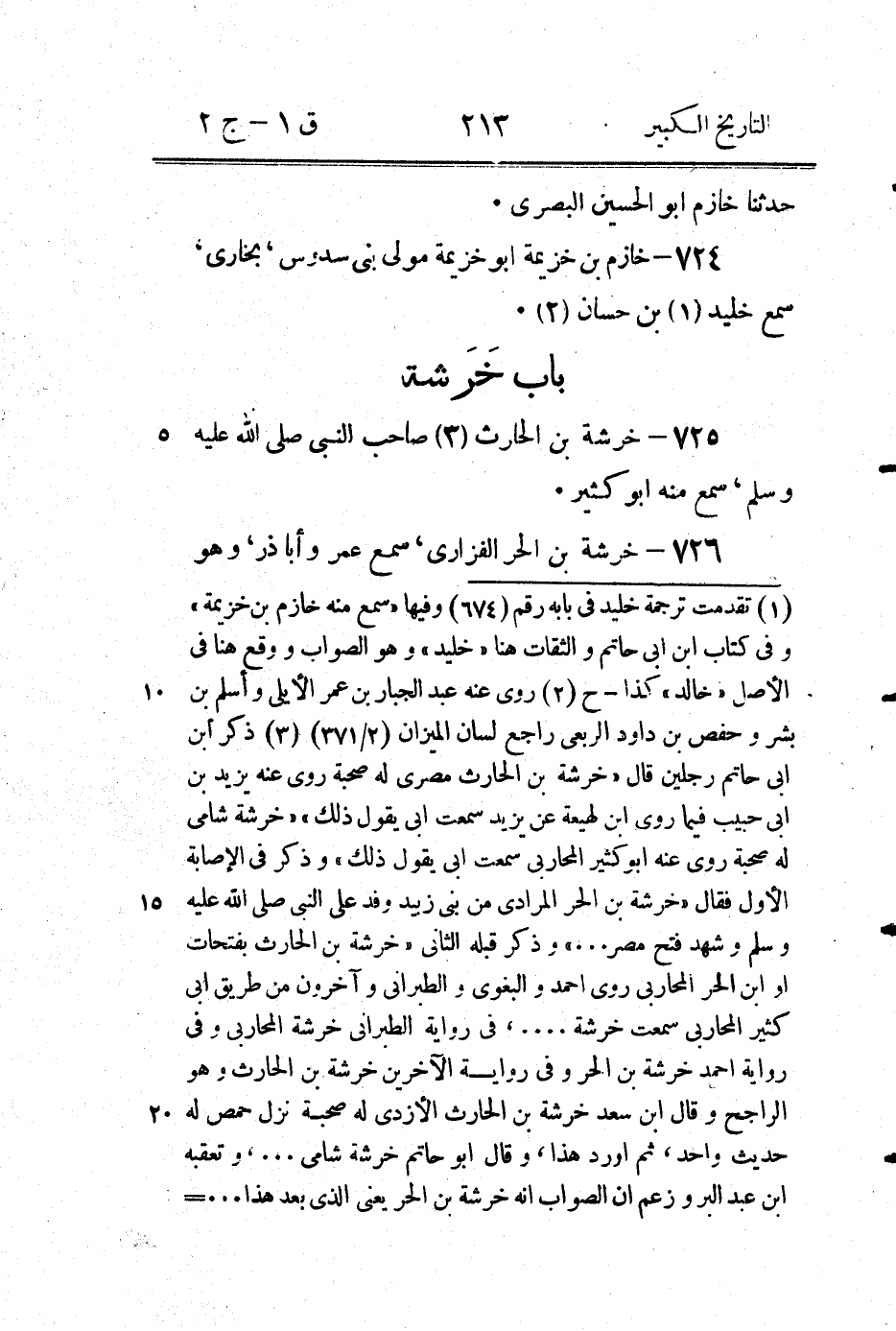 = وقد فرق بينهما البخاري فذكر خرشة بن الحر في التابعين وذكر هذا في الصحابة.." اقول المذكور هنا في التاريخ هو الشامي المختلف في اسم ابيه فأما المصرى فليس له ترجمة في الاصل والله اعلم - ح.