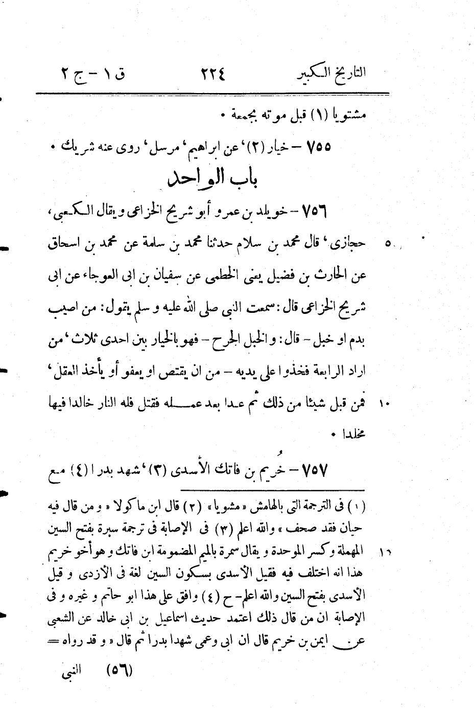 (2) جعل في الاصابة سمرة هذا غير اخى خريم وذكر اختلافا في اسمه واسم ابيه والله اعلم (3) وقيل حتات بمهملة مضمومة ومثناتين وقيل الحارث وقيل مالك بن الحارث والحارث هو ابن احنف وقيل اخيف وقيل خلف كذا في الاصابة - ح.