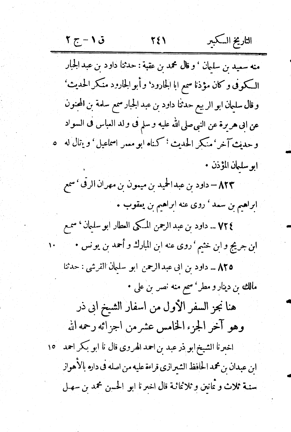 ابن عَبْد اللَّه المقري الْبَصْرِيّ قرأت عليه سنة اربع عشرة وثلاثمائة قَالَ حَدَّثَنَا أَبُو عَبْد اللَّه مُحَمَّد بْن إِسْمَاعِيل بْن إِبْرَاهِيم الْبُخَارِيّ الجعفي - قَالَ.