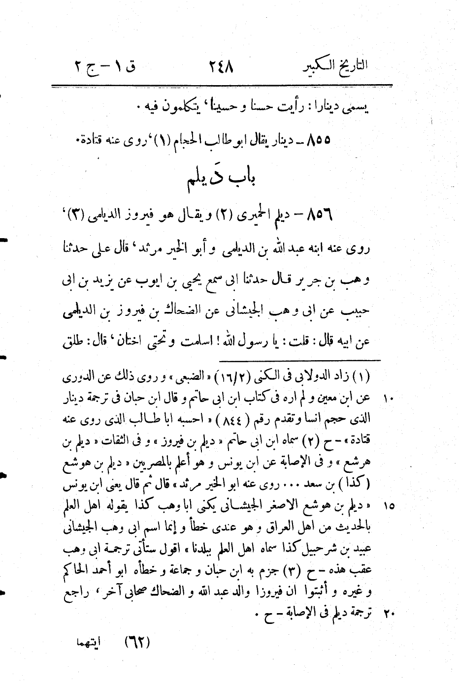 857 - ديلم بْن الهوسع (1) أَبُو وهب الجيشاني وجيشان من اليمن، سَمِعَ الضحاك بْن فيروز، روى عنهُ يزيد بْن أَبِي حبيب، وفي اسناده نظر، سماه ابن معين.