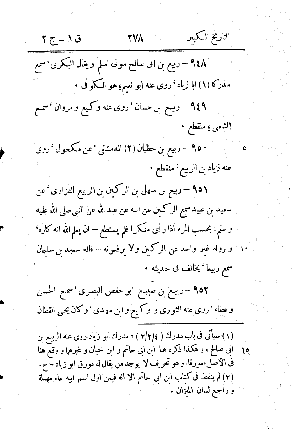 (2) في كتاب ابن ابى حاتم " الحارث بن عبيدة " بغير شك وذكر في ترجمة الحارث بن عبيدة الحمصى الذى تقدم في بابه (1 / 2 / 274) انه روى عنه الربيع ابن روح - ح.