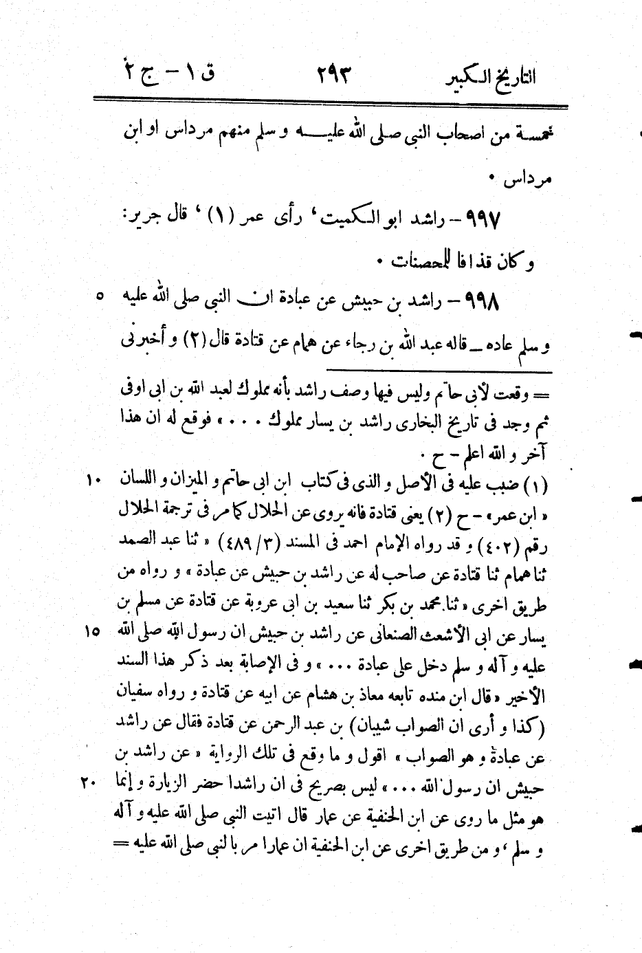 (1) يعنى التى في الحديث ولفظه كما في مسند احمد (3 / 489) " القتل في سبيل الله عزوجل شهادة والطاعون شهادة والغرق شهادة والبطن شهادة والنفساء يجرها ولدها بسرره إلى الجنة " - ح (2) انظر التعليق على الترجمة الاتية - ح (3) بهامش الاصل " قال أبو بكر بن ثابت راشد بن نجيح هذا هو راشد أبو محمد الحمانى وهم البخاري إذ جعله اثنين " اقول قد اشار المؤلف كعادته إلى احتمال وانهما واحد بقرنه بين الترجمتين اما ابن ابى حاتم فذكر ترجمة راشد بن نجيح بنحو ما ذكره المؤلف ثم ذكر اربع تراجم = [*]