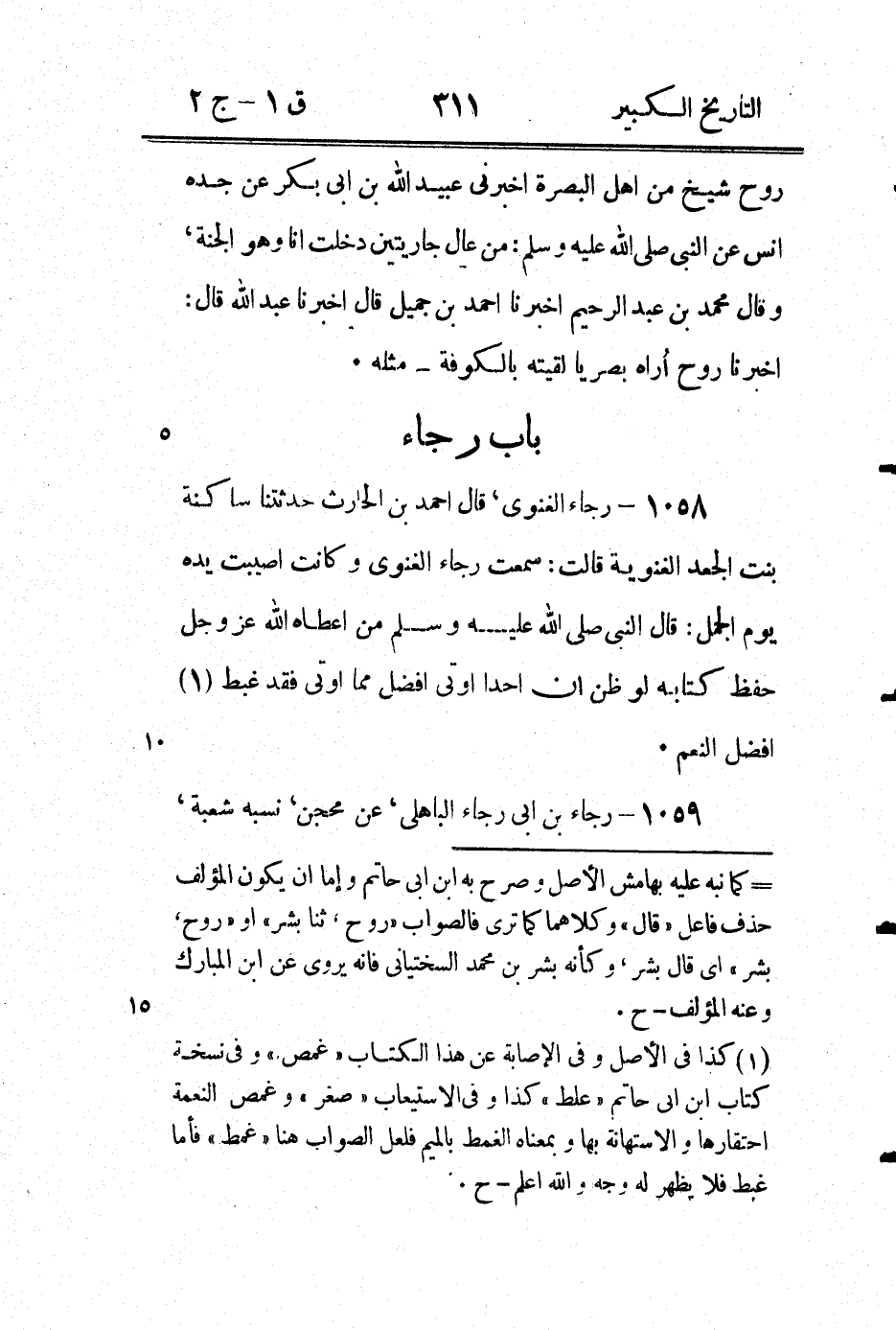 (1) له ترجمة في التهذيب (3 / 270) (2) هكذا في الاصل وعند ابن ابى حاتم عن ابن عون " قال كان ثلاثة يتبعون اللفظ القاسم بن محمد ومحمد بن سيرين ورجاء بن حيوة " فلعل الصواب هنا " يحدث كما يسمع " - ح (3) هو رجاء ابن ابى سلمة يأتي - ح.