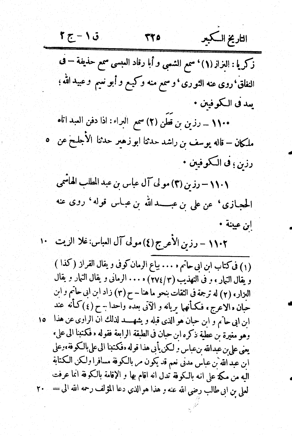 = افراد هذا لكن ههنا احتمالان آخران احدهما ان رزينا هذا ادرك زمان على ثم عاش إلى ان روى عن على بن عبد الله، الثاني ان تكون كلمة " بالكوفة " خطأ من الراوى توهما منه ان المراد على بن ابى طالب فزادها أو كان بدلها " بالمدينة " والله اعلم - ح.