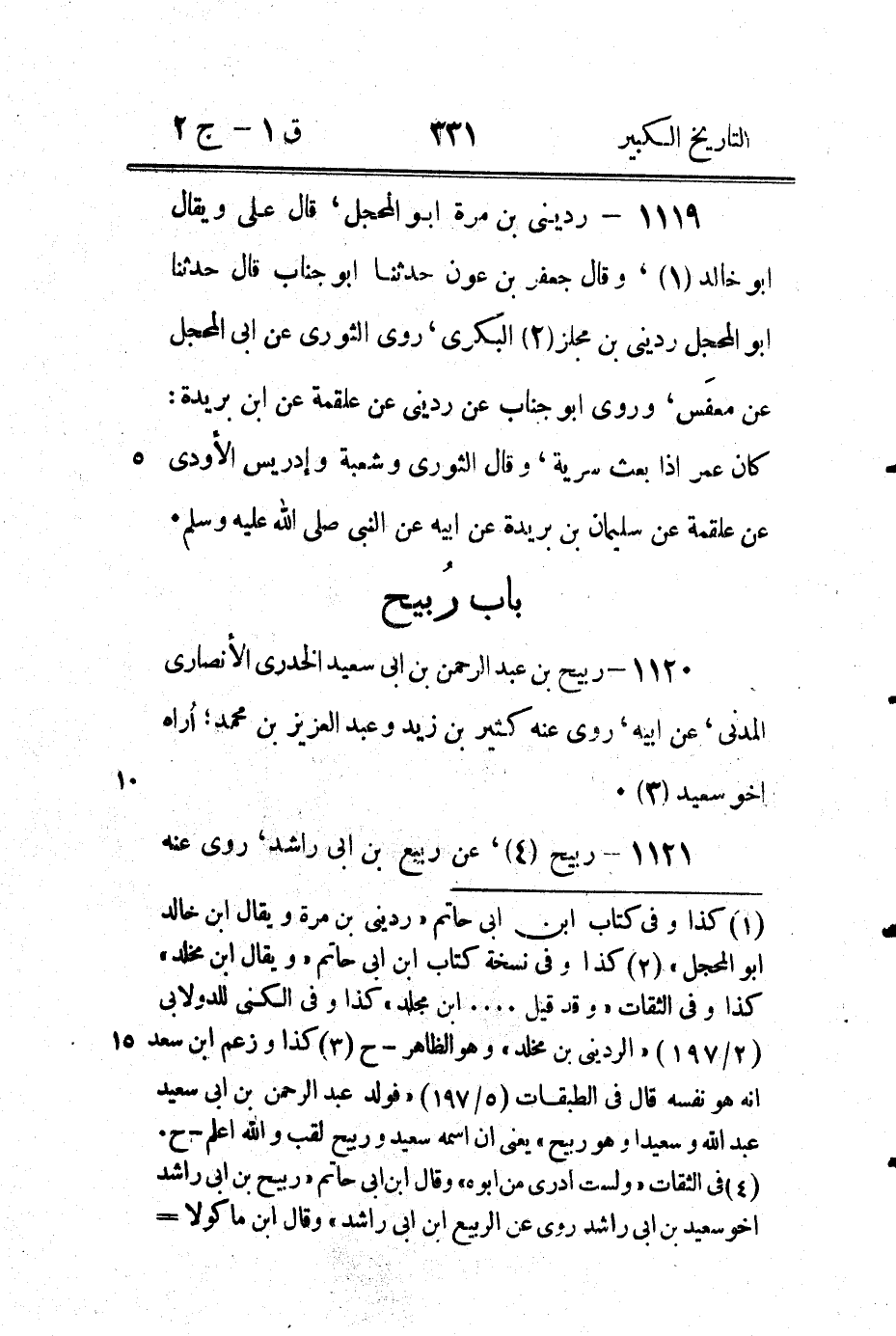 = " ربيح بن ابى راشد اخو ربيع وجامع روى عنه اخيه ربيع..ذكره البخاري ولم ينسبه لم يقل بانه اخو ربيع " وذكر الذهبي في المشتبه الاول اعني ربيح بن عبد الرحمن وقال " فرد " يريد انه لاسمي له وتبعه ابن حجر في التبصير كأنهما لم يراجعا اكمال ابن ماكولا فانه ذكر هذين وزاد جماعة منهم " ربيح بن مالك روى عن عبد الله بن يزيد (كذا) الاسلمي يروى عنه أبو تميلة " - ح.
